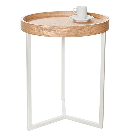 Dunord Design Couchtisch 60 Cm Weiss Rund Modern Inkl Tablett