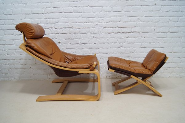 Cognac Leather Kroken Lounge Chair Ottoman By Ake Fribyter For