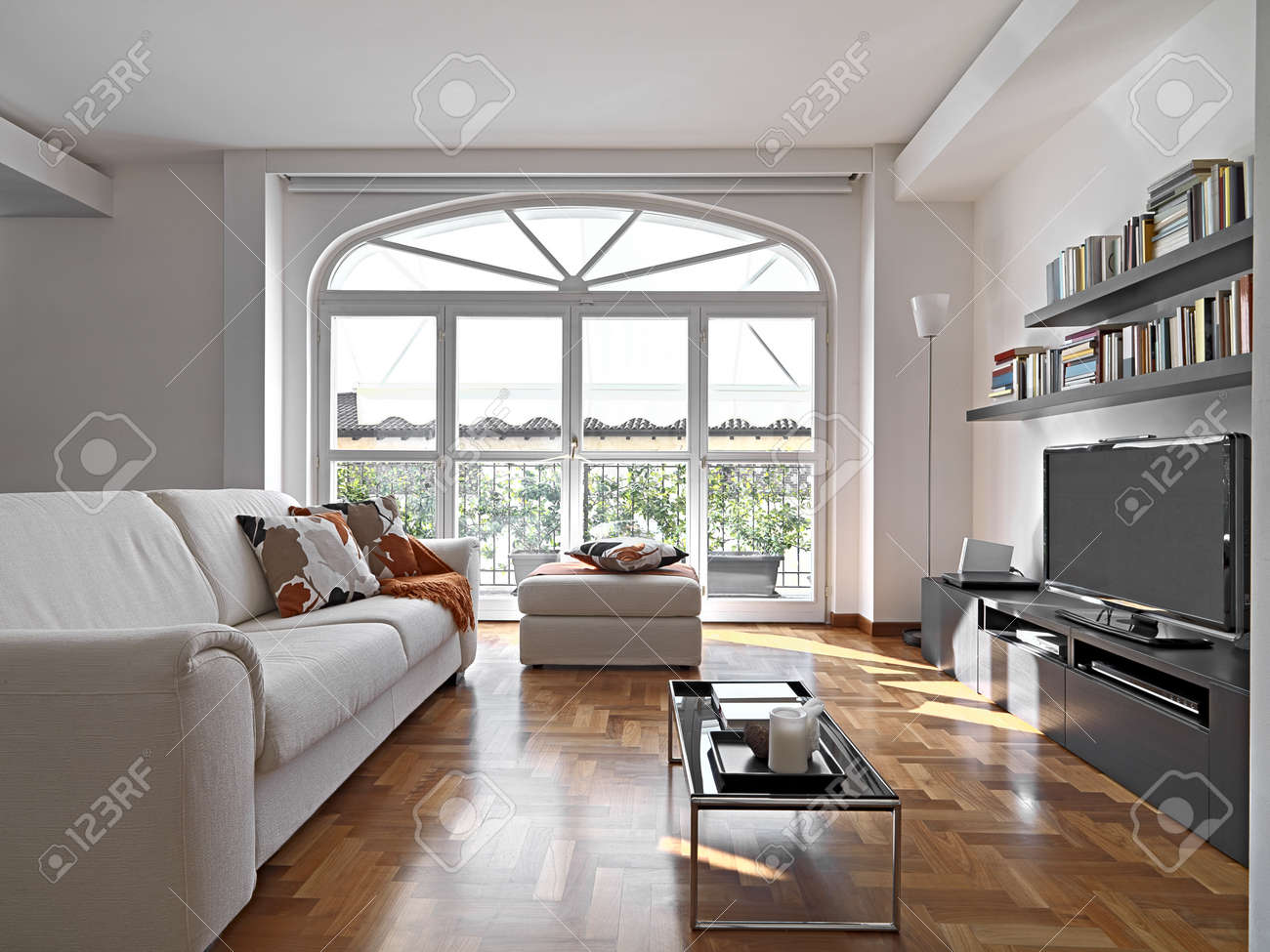 Innenansicht Eines Modernen Lving Raum Mit Stoff Sofa Und