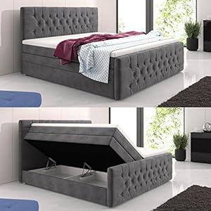 Boxspringbett Grau Swing Mit Bettkasten 140x200 Schaum Topper