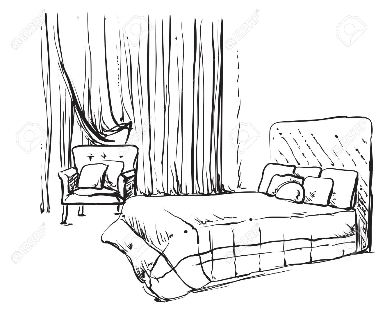Schlafzimmer Interieur Skizze Mobel Und Bettwasche Lizenzfrei
