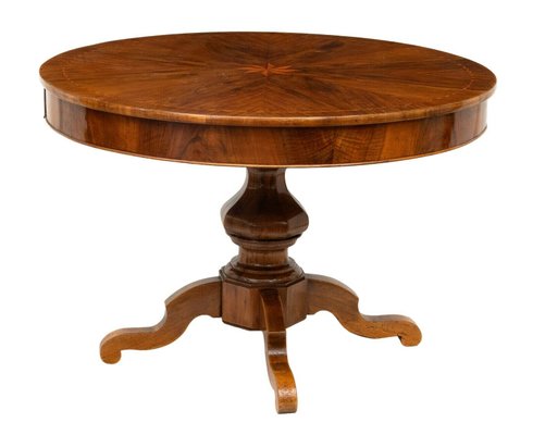 Antiker Runder Esstisch Aus Nussholz Mahagoni 1800er Bei Pamono