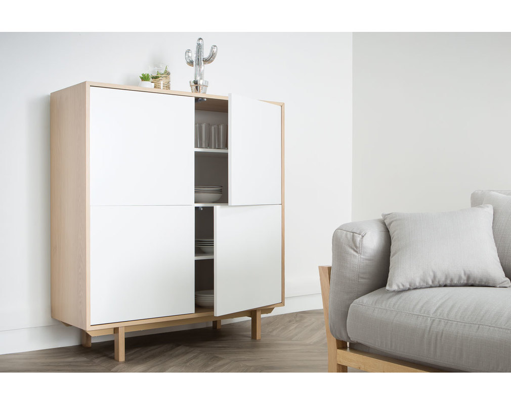 Highboard Skandinavisch Weiss Und Holz Stripe Miliboo