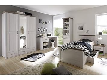 Jugendzimmer Kinder Mobel Set Bett Kleiderschrank Regal Weiss Grau