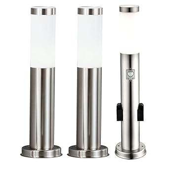 3er Set Aussen Steh Lampen Edelstahl Bewegungsmelder Steckdosen