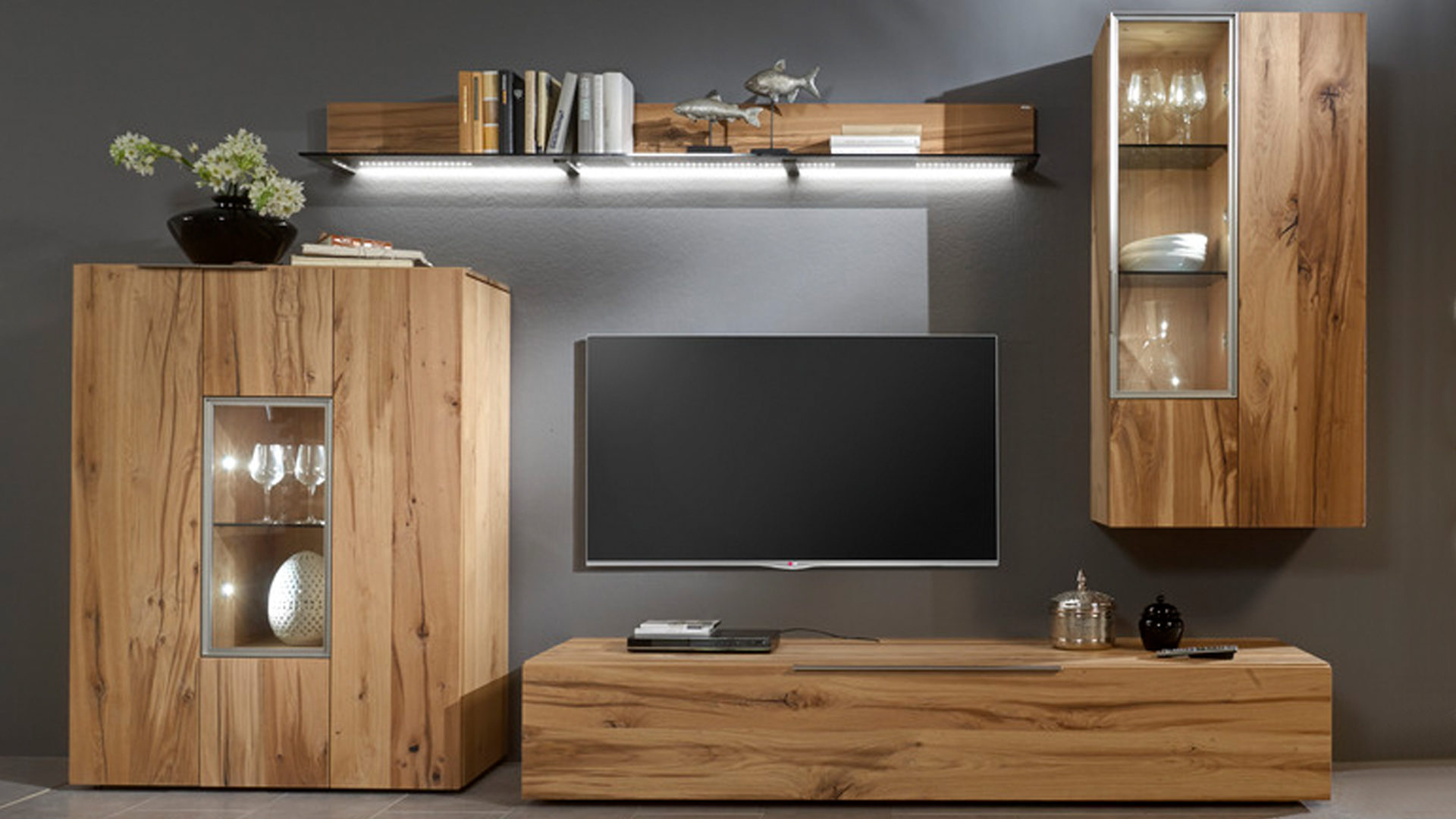 Massivholz Tv Wohnwand Wildeiche Olpe 55 Inkl Led Beleuchtung B H T
