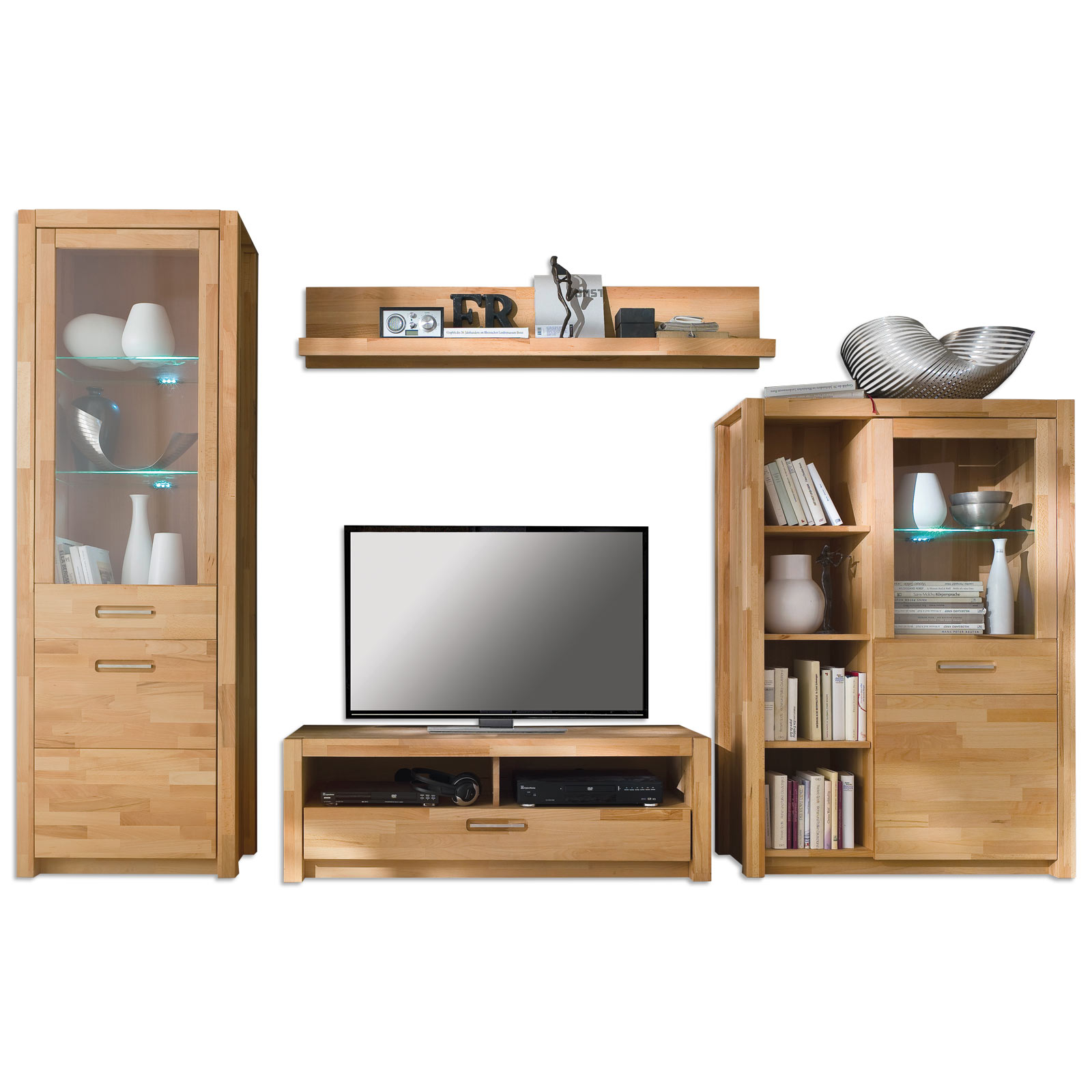 4 Teiliges Wohnwand Set Kernbuche Massivholz Vitrine