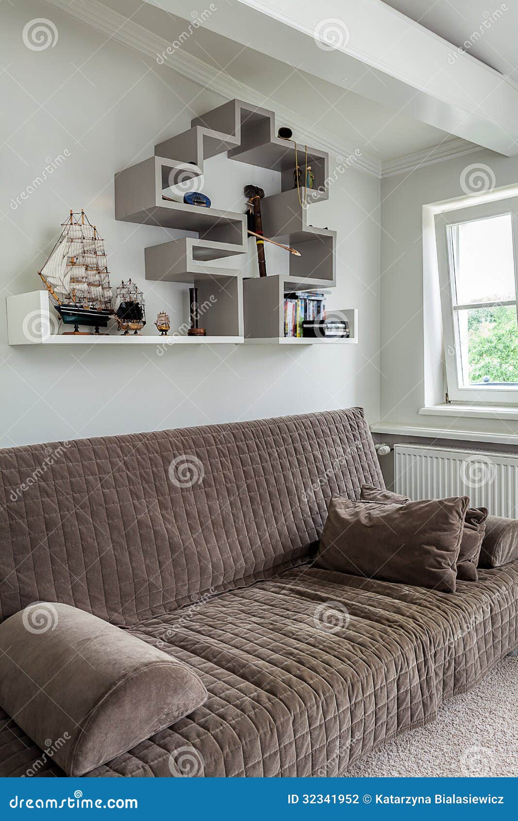 Weisses Sofa Vor Brauner Wand Buy This Stock Photo And Explore