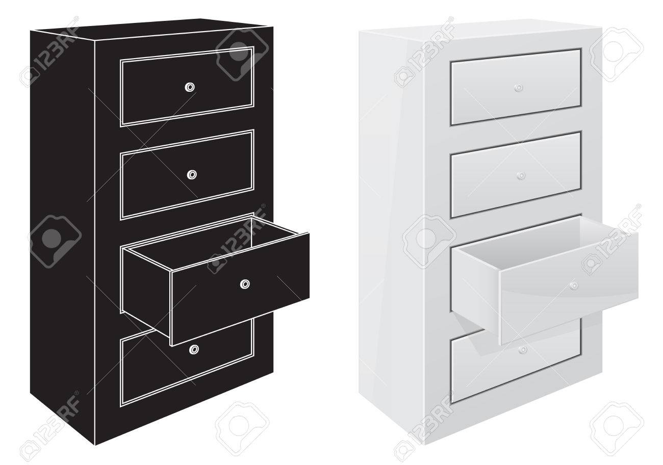 Schwarze Silhouette Und 3d Darstellung Der Buro Schrank Schubladen