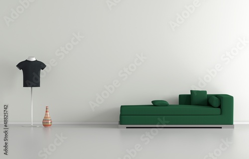 Wohndesign Grunes Sofa Vor Grauer Wand Buy This Stock