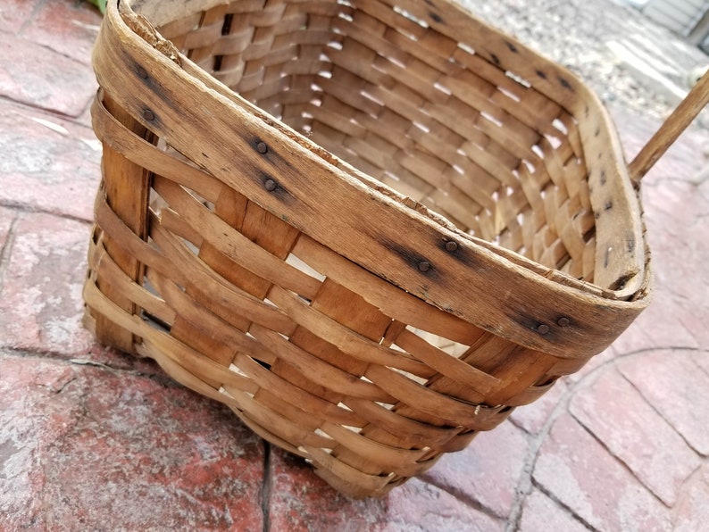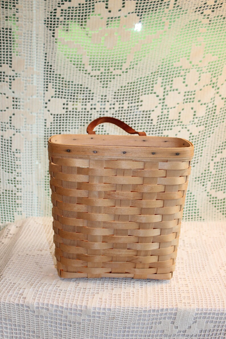 Jahrgang Gewebt Lamellen Bugholz Griff Korb Mit Klappdeckel Und