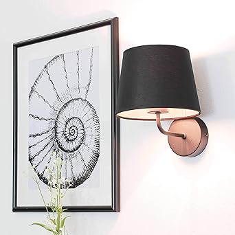 Wandleuchte Schwarz Stoff Schirm Trichter Metall Gestell Bauhaus