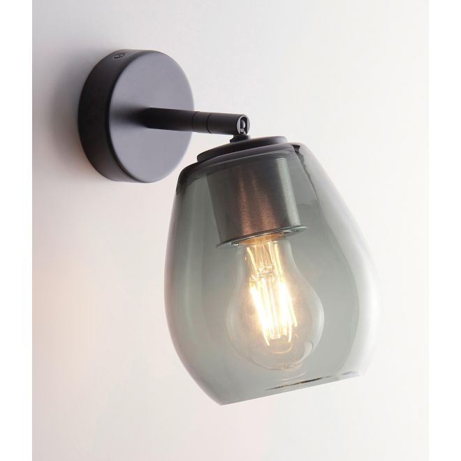 Wandleuchte Schwarz Rauchglas Schirm Rund 2 Flammig Metallgestell